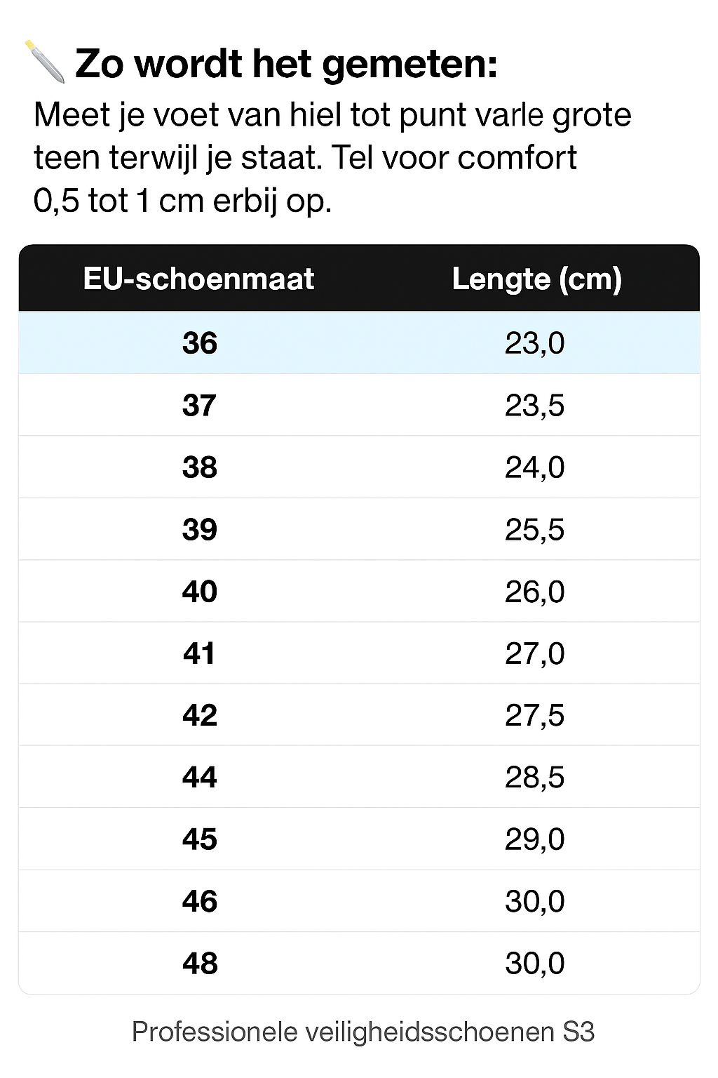 Wanneer jouw werk veiligheidsschoenen vereist, voldoet de S3-norm aan alle belangrijke eisen.